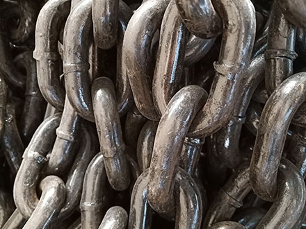 2、刮板机输送链条矿用高强度环链适用于刮板、刨床、滚筒采煤机等机械牵引链。