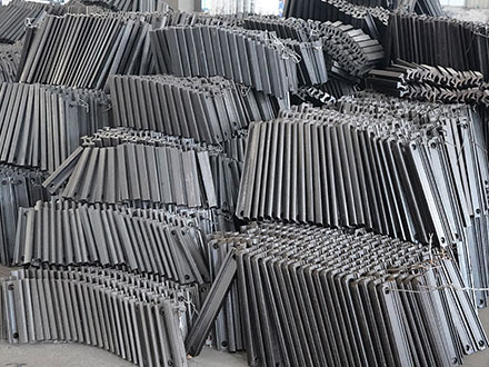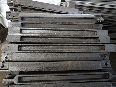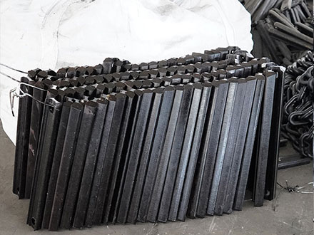 刮板机刮板与链条、螺栓共同组合成刮板链,当然有的是刮板机刮板、横梁、单体栓和链条共同组成,螺栓穿过刮板上的螺纹孔将链条以及横梁压在一起固定住,而在刮板机刮板装入刮板机中部槽中时时需要正面朝下反面朝上的,这样才能将煤炭在中部槽内刮动前行,当刮板输送机启动运转,通过链轮组件便带动刮板链进行往复的运转。