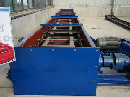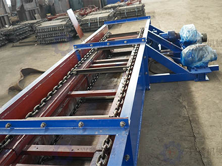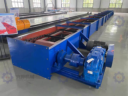 结构简单,头尾链轮通过环链链条,连接刮板进行物料输送工作,运输的方式可单层可双层,安装维修方便,链条以及刮板可随时进行更换,设备在运行过程中可多点进料及出料。