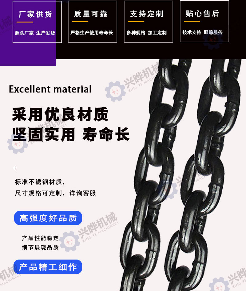 矿用圆环链 18*64高强度链条 25锰钒材质链子 高温淬火热处理